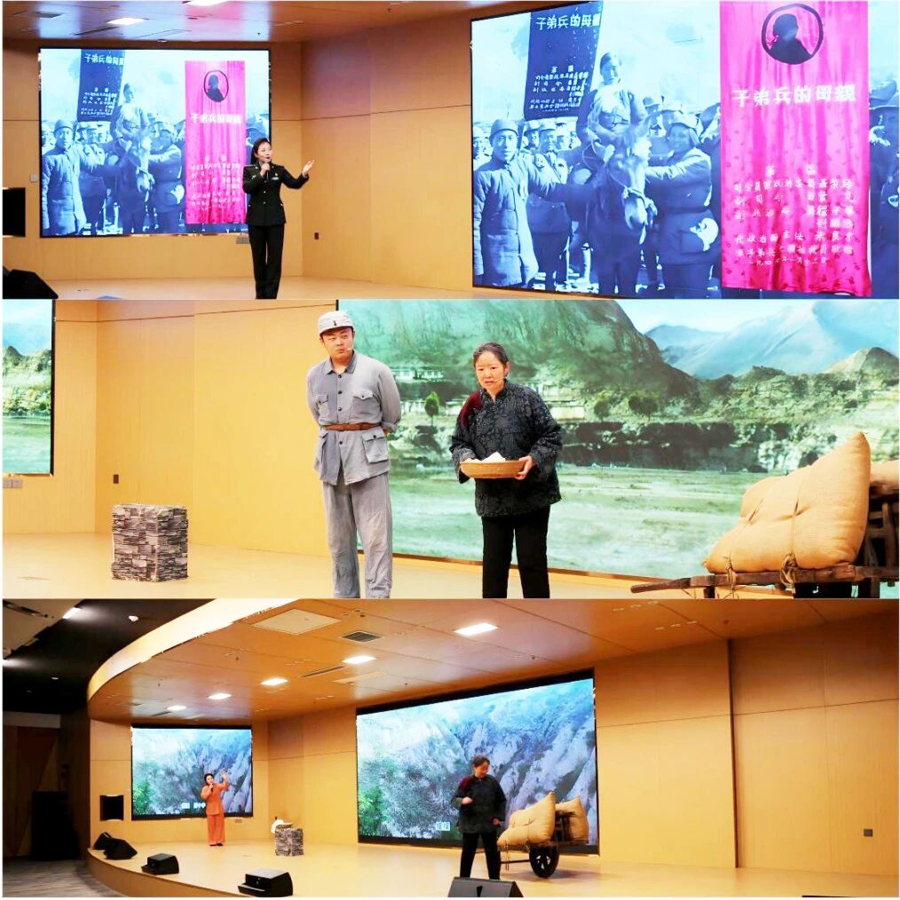 本次党课主讲为来自西柏坡纪念馆的馆员群体。党课以西柏坡“支前—抗战—解放”的红色历史为逻辑主线,馆员们以“讲述+演绎+歌唱”的生动形式,搭配“视、听、悟”相结合的沉浸式学习设计,将党史学习教育与思政育人深度融合,为在场师生献上了一堂精彩纷呈、浸润人心的专题党课。