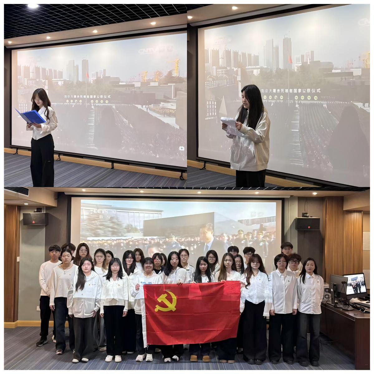 未来智能艺术学院第三党支部开展“勿忘国殇,勇担使命”活动,组织观看纪录片《幸存者》、进行主题诗朗诵、开展交流分享等,让支部成员在沉浸式体验中感受历史伤痛,坚定爱国担当。通过一系列活动将历史教育与党性教育深度融合,营造了铭记历史、缅怀先烈、珍爱和平的浓厚校园文化氛围。